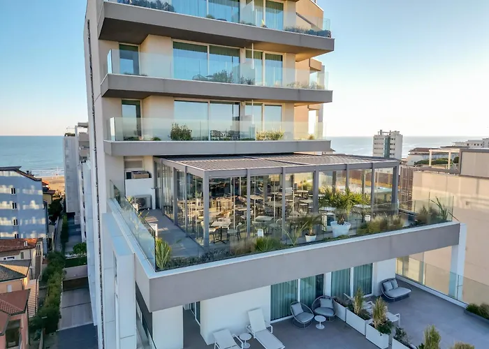 L'hôtel offre des vues sur la Mer Adriatique depuis les chambres avec un coffre personnel et un bureau. Elles sont conçues avec un décor contemporain, et offrent un bidet et une douche à l'italienne dans les salles de bain.